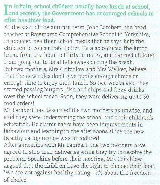 В Великобритании школьники обычно обедают в школе, и недавно правительство поощряет школы предлагать более здоровую пищу.
