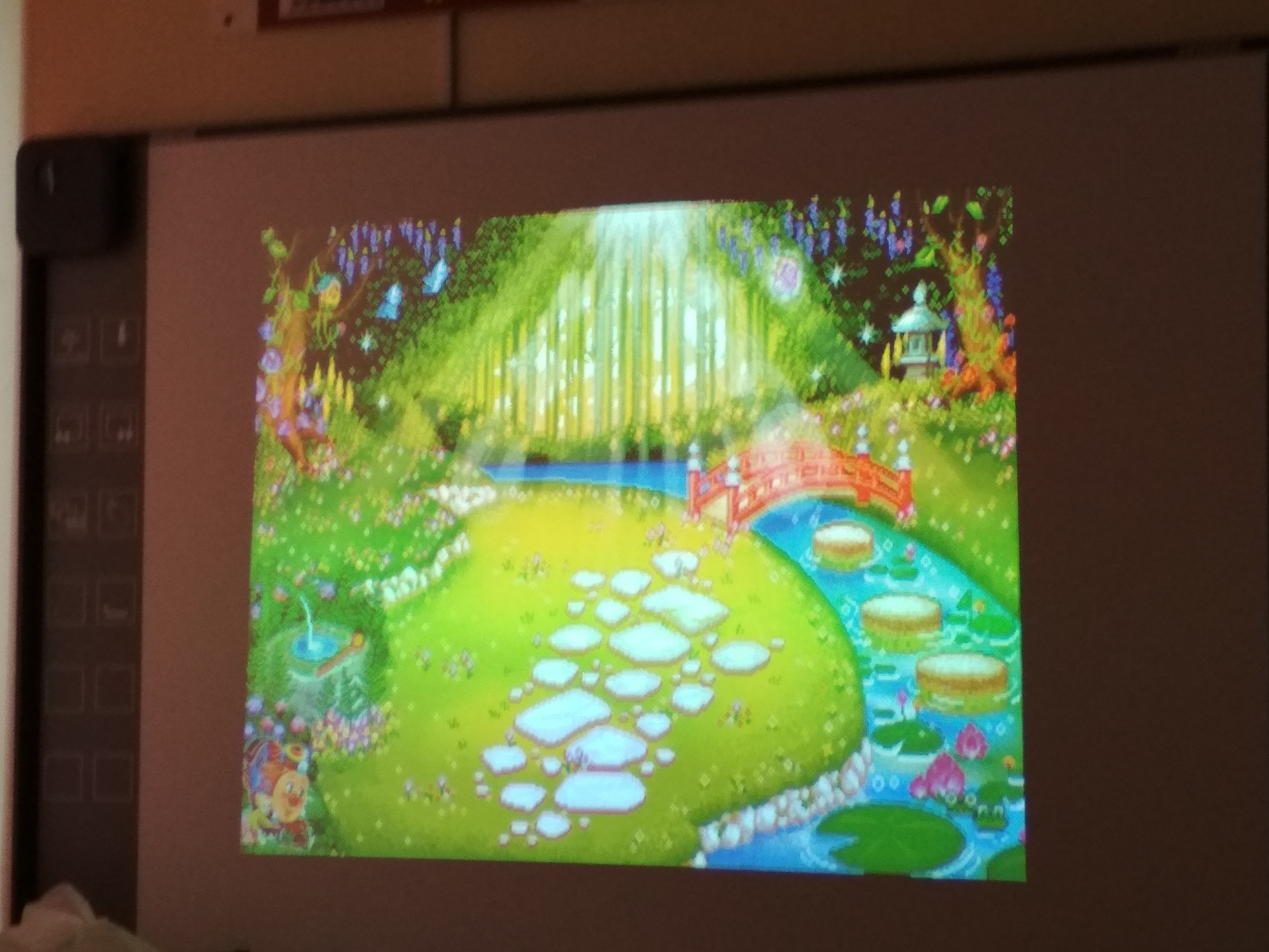 На картине я вижу нечто что-то красивое. Такое все яркое и солнечное, как в сказке. Ручеёк бежит,кувшинки плавают, а через него сделан миленький мостик, через который можно проходить. Травка зелёная зелёная, на ней лежат камушки и растут красивые цветы. Все чудесно и волшебно!