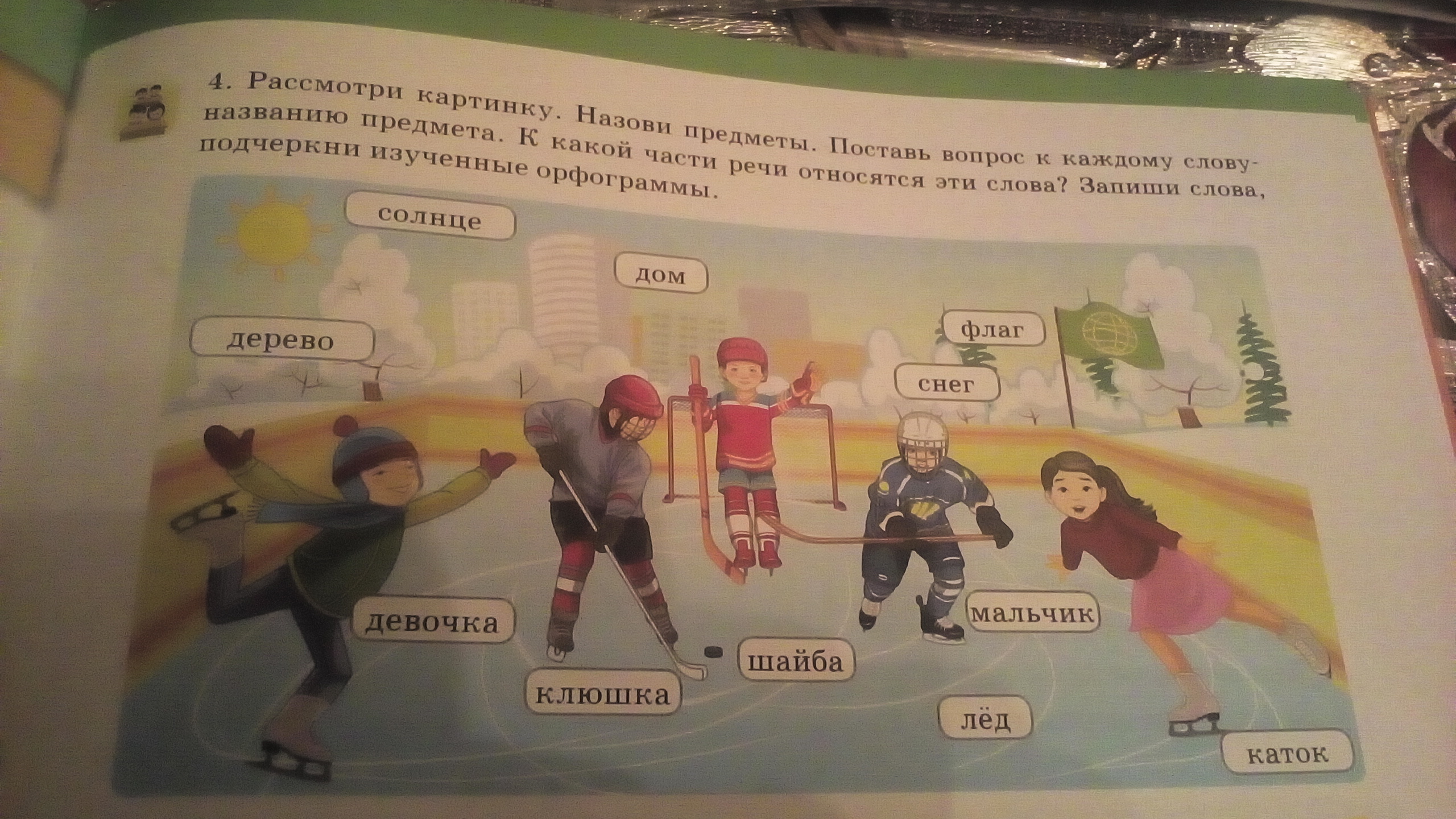 Рассмотри картинку Назови предметы Поставь вопрос каждому слову название предмета в какой части речи относятся эти слова Запиши слова подчеркни изученные орфограммы