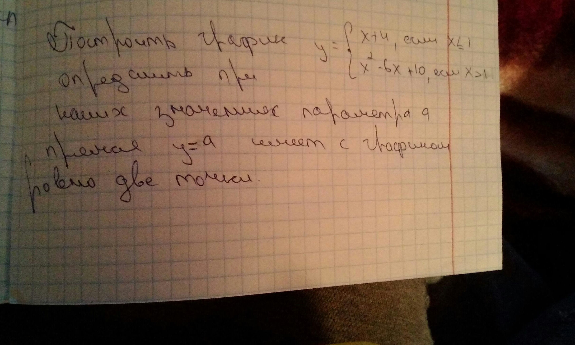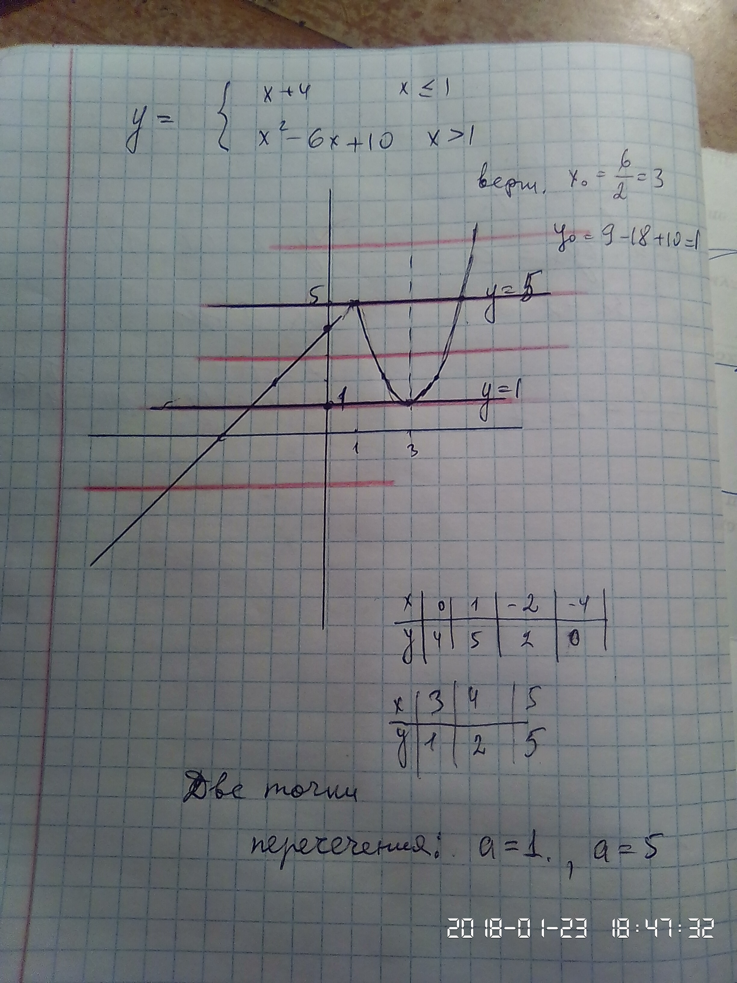 Это кусочная функция, строим ее график по частям: до 1 - прямолинейный график, а потом параболический.