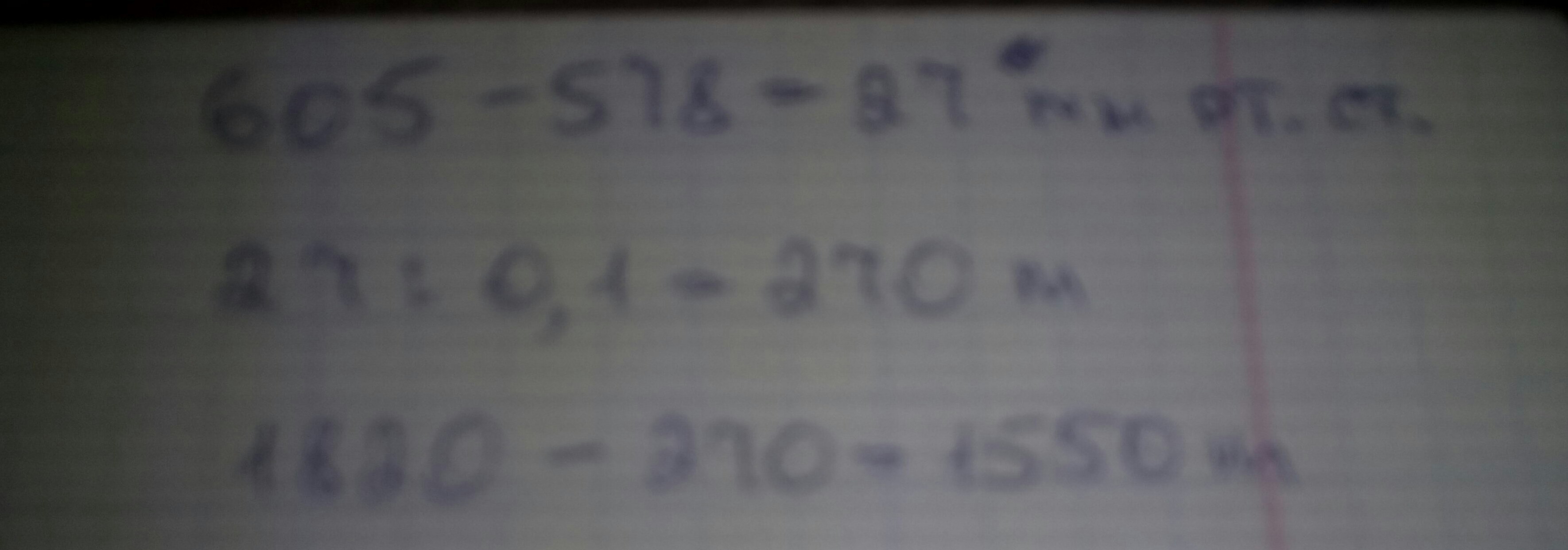 Наивысшая в Украине метеостанция находиться в Украинских Карпатах на склоне горы Пожижевська.На вершине горы(1820м) барометр показывает 578 мм.рт.ст.,а на станции 605.Вычислите на какой высоте находиться метеостанция