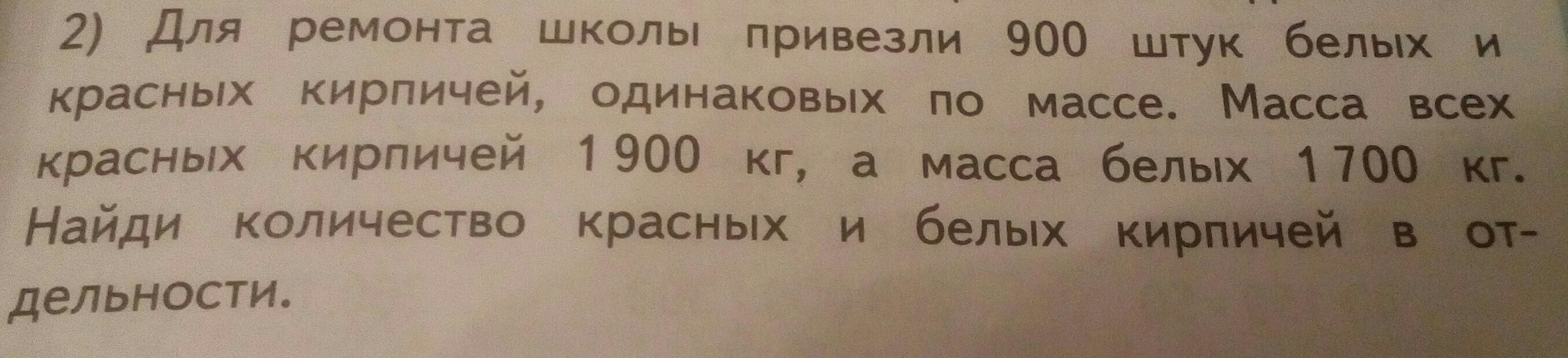 Ответ: 475 красных кирпичей, 425 белых кирпичей