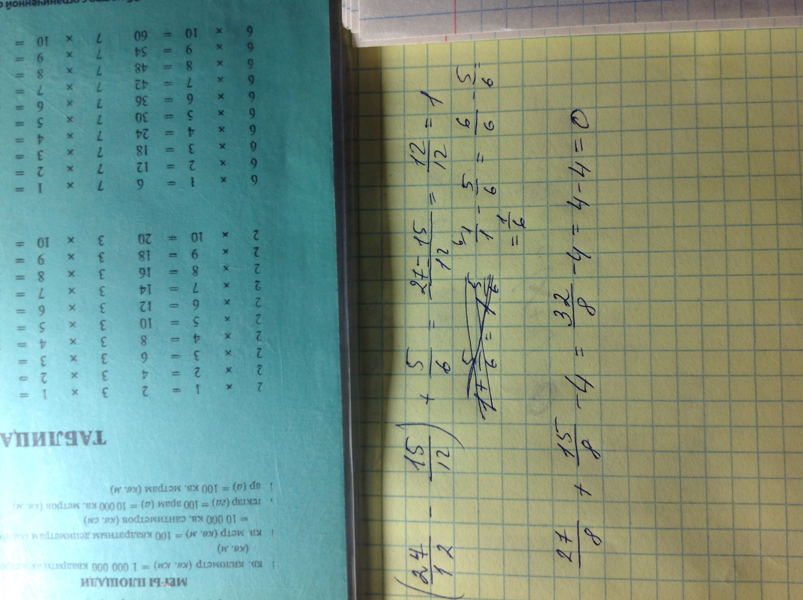 1) ( 2 7/12 - 1 5/12 ) + 5/6
