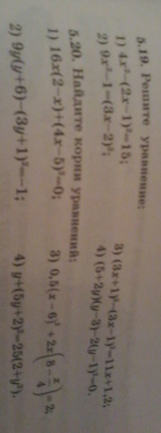 5.19. Решите уравнение : 1 ) 4х^2- ( 2x-1)^2=15