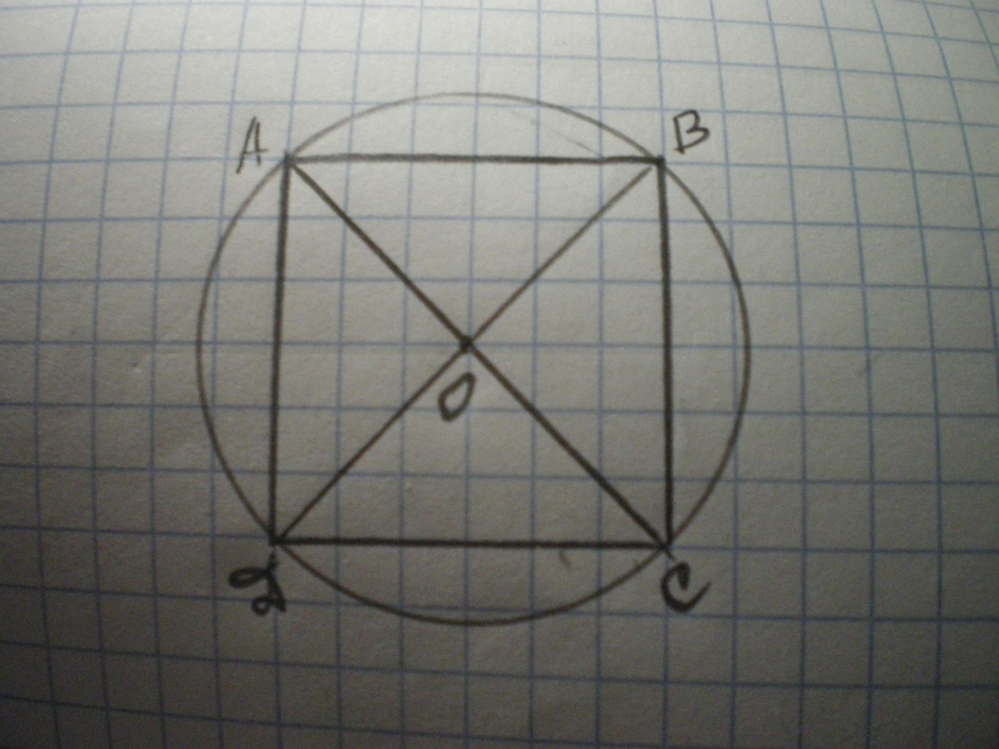 Построй квадрат ABCD длина стороны которого равна 3 см Проведи в нём диагонали и обозначь буквой O точку их пересечения Начертит окружность с центром в точке О и радиусом OA