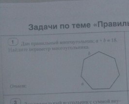 дан правильный многоугольник а+b= 18 найдите периметр многоугольника