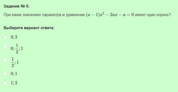 При каких значениях параметра a уравнение (a−1)x^2−2ax−a=0 имеет один корень?