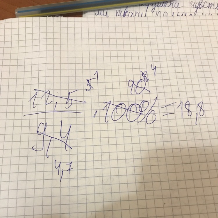 12,5 /2,5 и 100/2,5 выходит 5 и 40, 40/5 выходит 8, 9,4/2 и 8/2 выходит 4,7 и 4 , и умножаешь 4,7 и 4 выходит 18,8