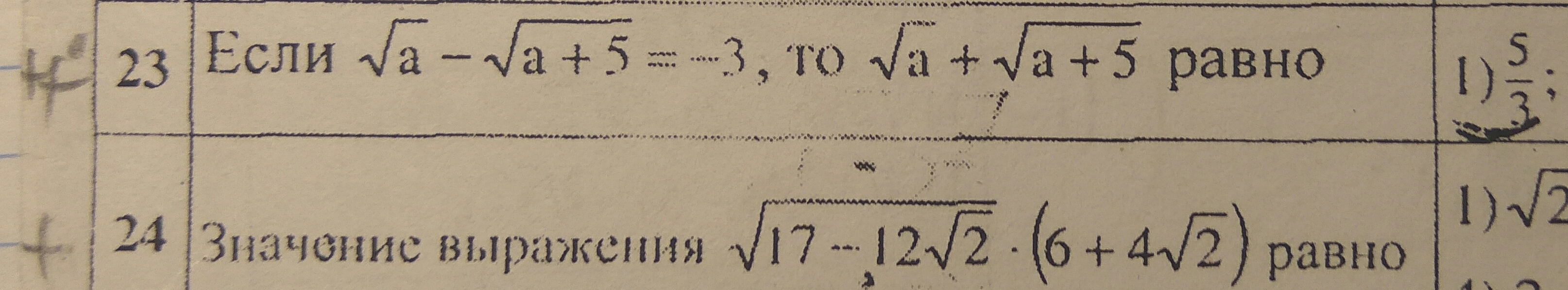 23); ; ; ; sqrt{a}-sqrt{a+5}=-3\\\(sqrt{a}-sqrt{a+5})cdot (sqrt{a}+sqrt{a+5} )=(sqrt{a})^2-(sqrt{a+5})^2=\\=a-(a+5)=a-a-5=-5\\\(underbrace {sqrt{a}-sqrt{a+5}}_{-3})cdot (sqrt{a}+sqrt{a+5})=-5 ; ; Rightarrow \\\ sqrt{a}+sqrt{a+5} =frac{5}{3}