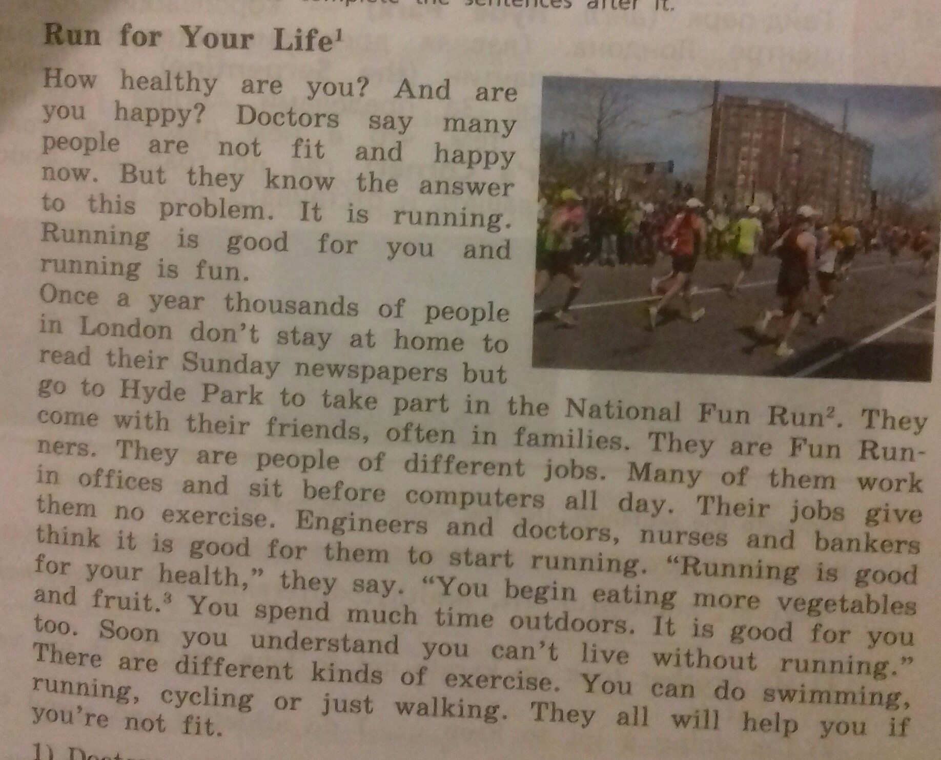 Один раз в год тысячи людей в Лондоне не остаются дома, чтобы читать свои воскресные газеты, но отправляются принять участие в Национальном фестивале развлечений. Они приходят со своими друзьями, часто с семьями. Это забавные бегуны. Они люди разных профессий. Многие из них работают в офисах и сидят перед компьютерами в течении всего дня. Их работа не дает им никаких упражнений. Инженеры и врачи, медсестры и банкиры думают, как хорошо бы было для них, начать бегать. "Бег- полезен для здоровья", - говорят они. "Вы начинаете есть больше овощей и фруктов. Вы много времени проводите на свежем воздухе. Это тоже хорошо для вас. Вскоре вы понимаете, вы не можете жить без бега."