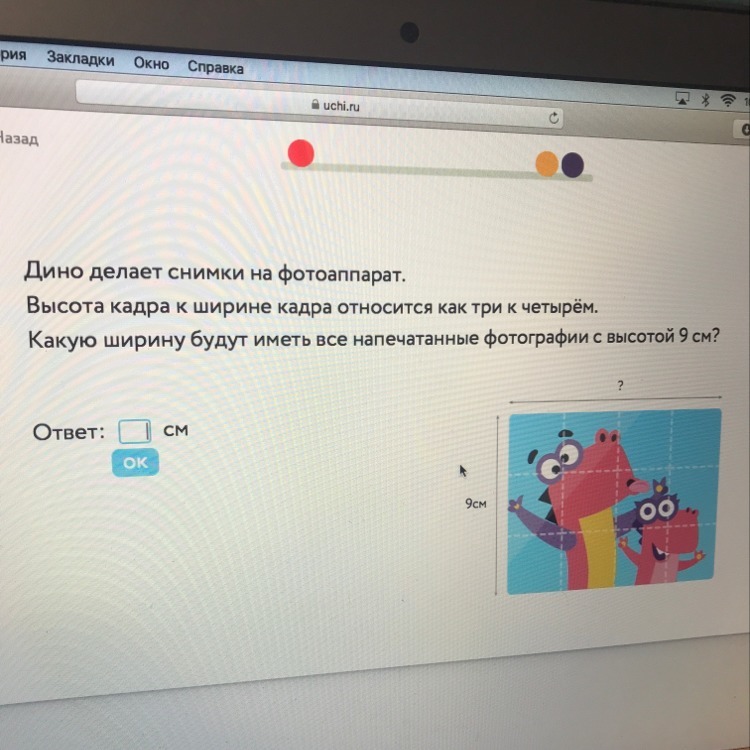 Так как соотношение сторон 3/4 высота 9см что в 3 раза больше. Значит высота будет также в 3раза больше—4*3=12см