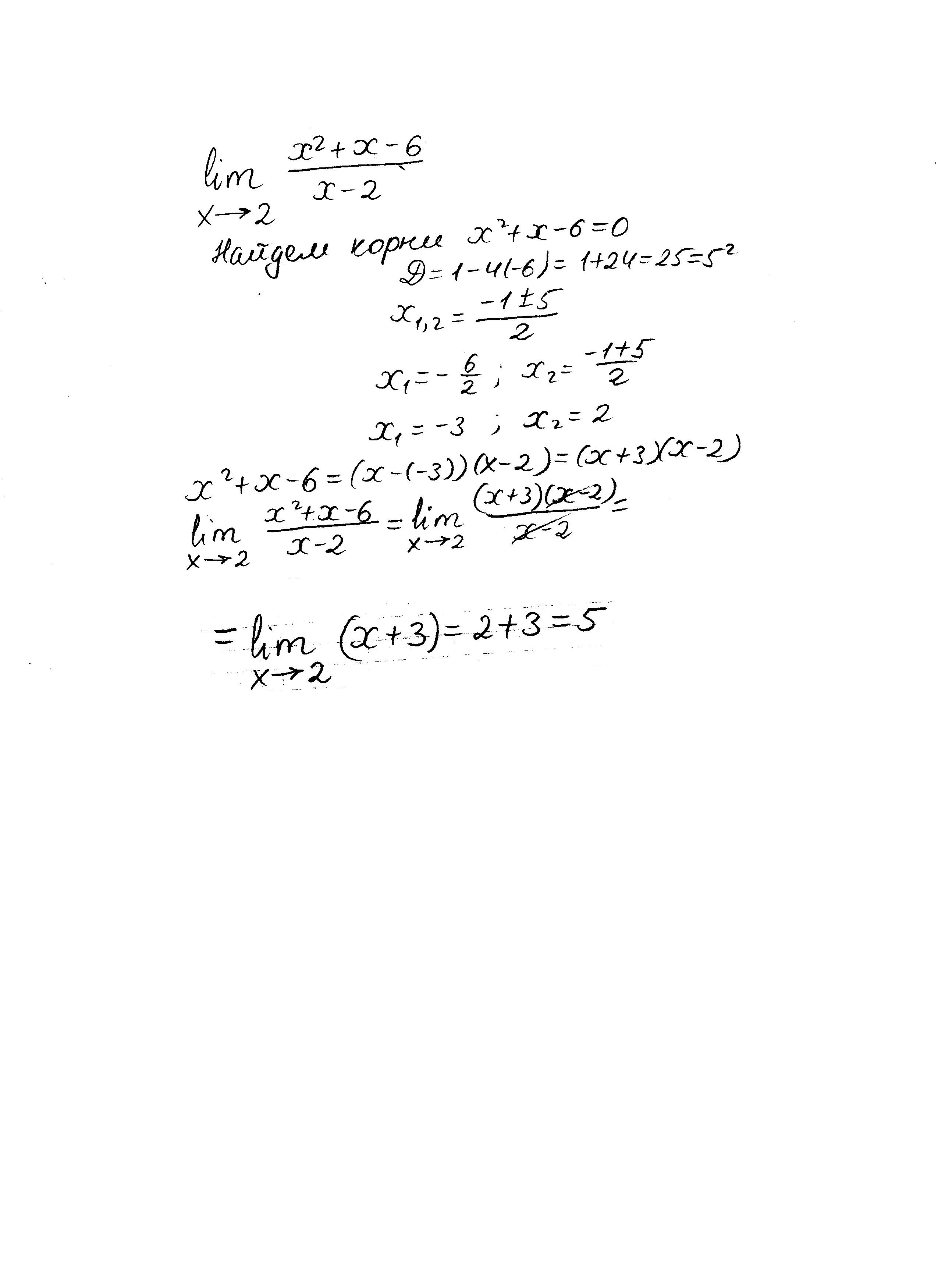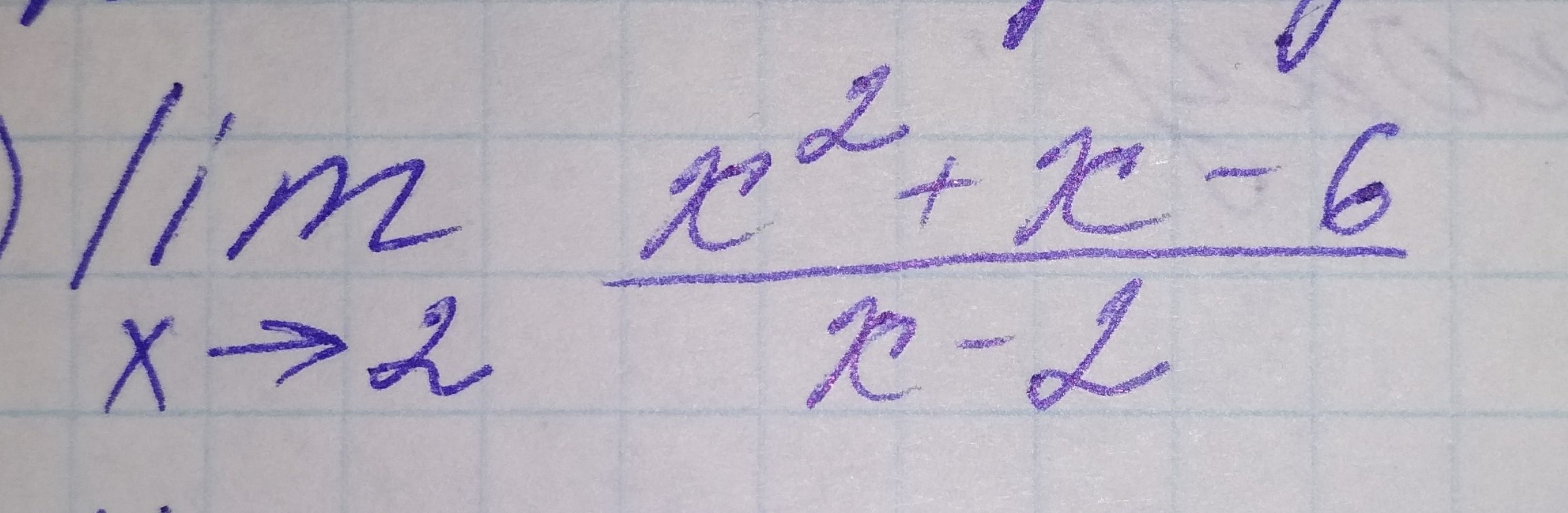 lim(x²+x-6)/(x-2)=lim(x+3)(x-2)/(x-2)=lim(x+3)=2+3=5