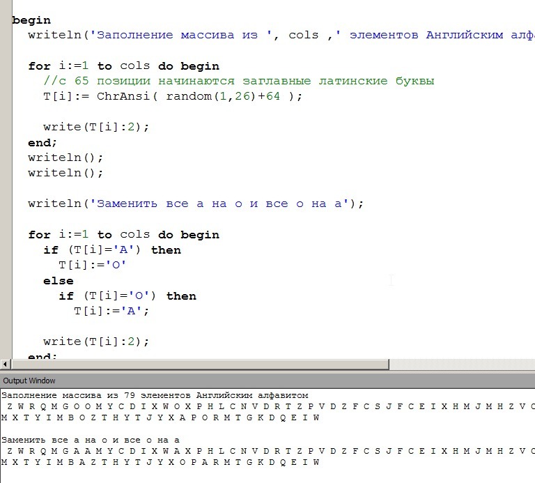 writeln('Заполнение массива из ', cols ,' элементов Английским алфавитом');