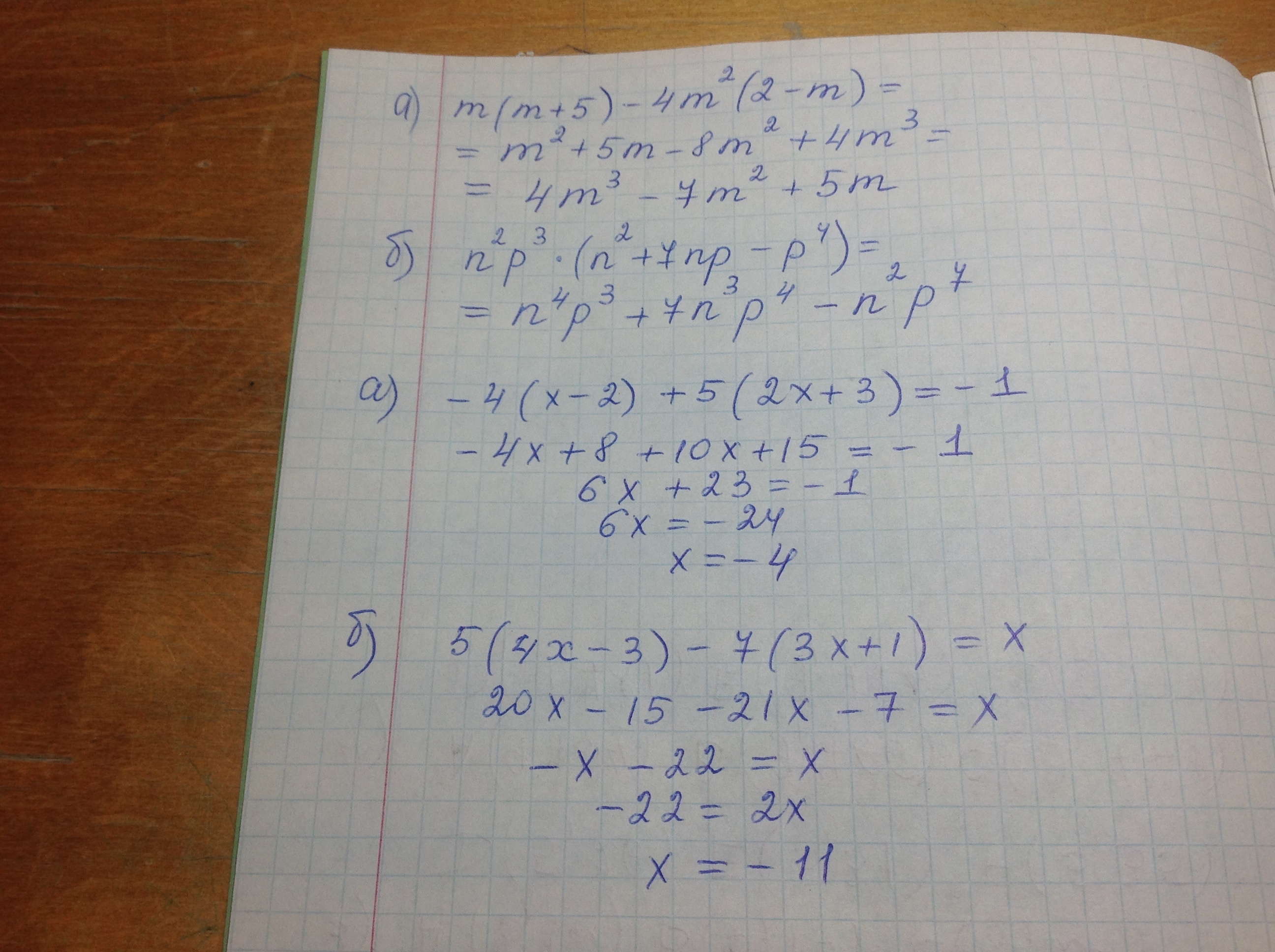 1)Выполните действия: a) m*(m+5)-4m^2*(2-m)