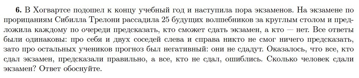 Теперь предположим, что сосед Гарри справа не сдал экзамен. Тогда он сказал, что сосед Гарри слева не сдал экзамен, и ошибся. Итог - сдали Гарри и его сосед слева.