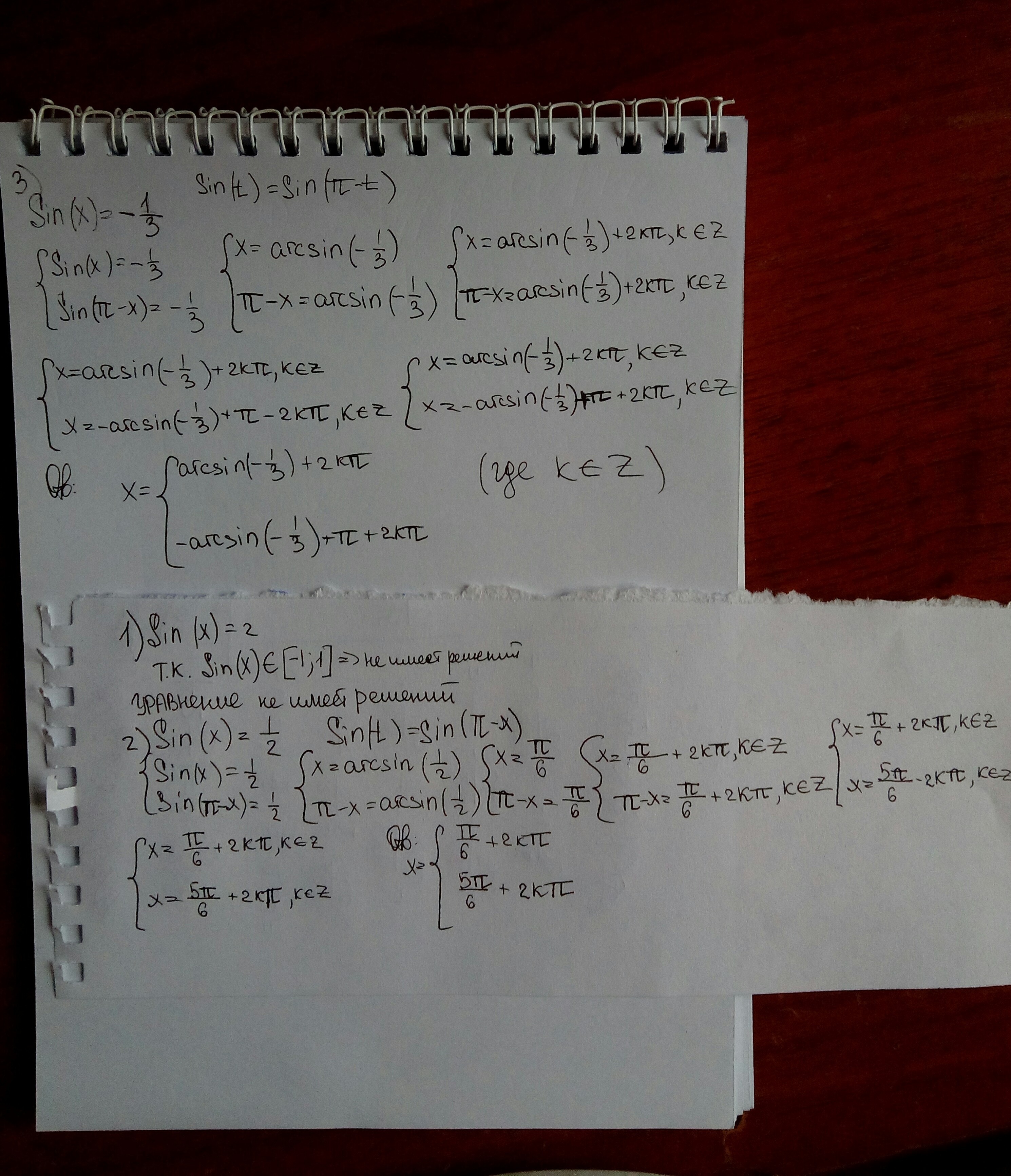 Чтобы изолировать х, используем обратную тригонометрическую функцию. Тоже самое с (π-х).