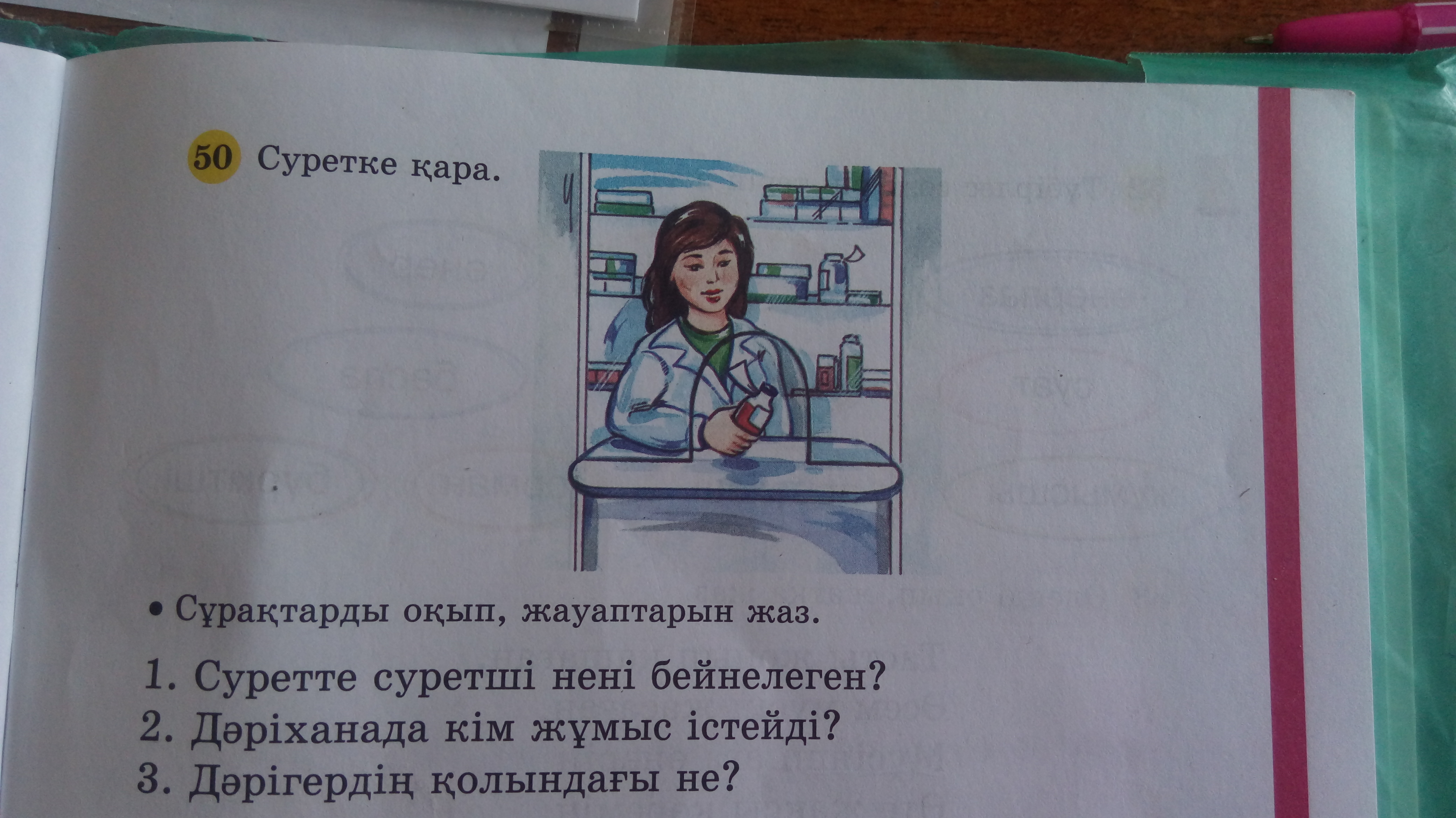 1.Суретте суретші дәріханадағы дәріханашыны суреттеген.