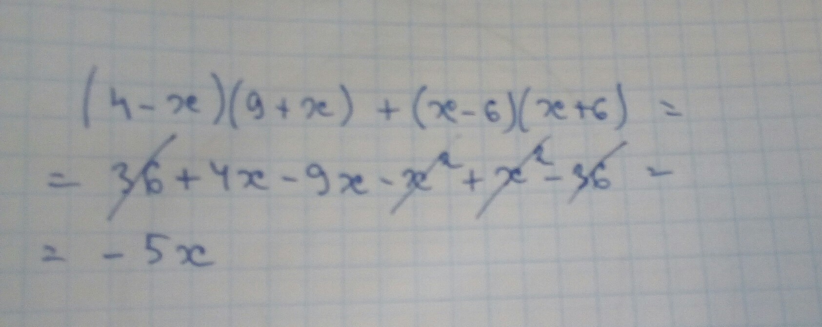 (4-х)(9+х) ...х-6 и х+6 взаимоуничтожаются