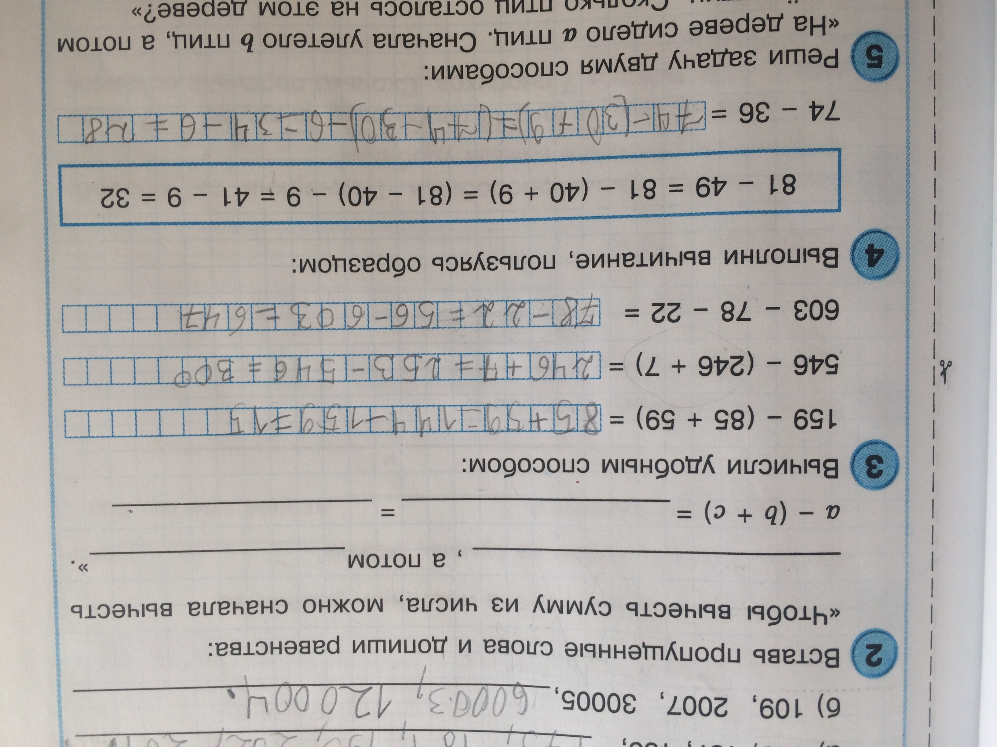 Чтобы вычесть сумму из числа, можно вычесть из этого числа одно слагаемое, из полученной разности - второе.