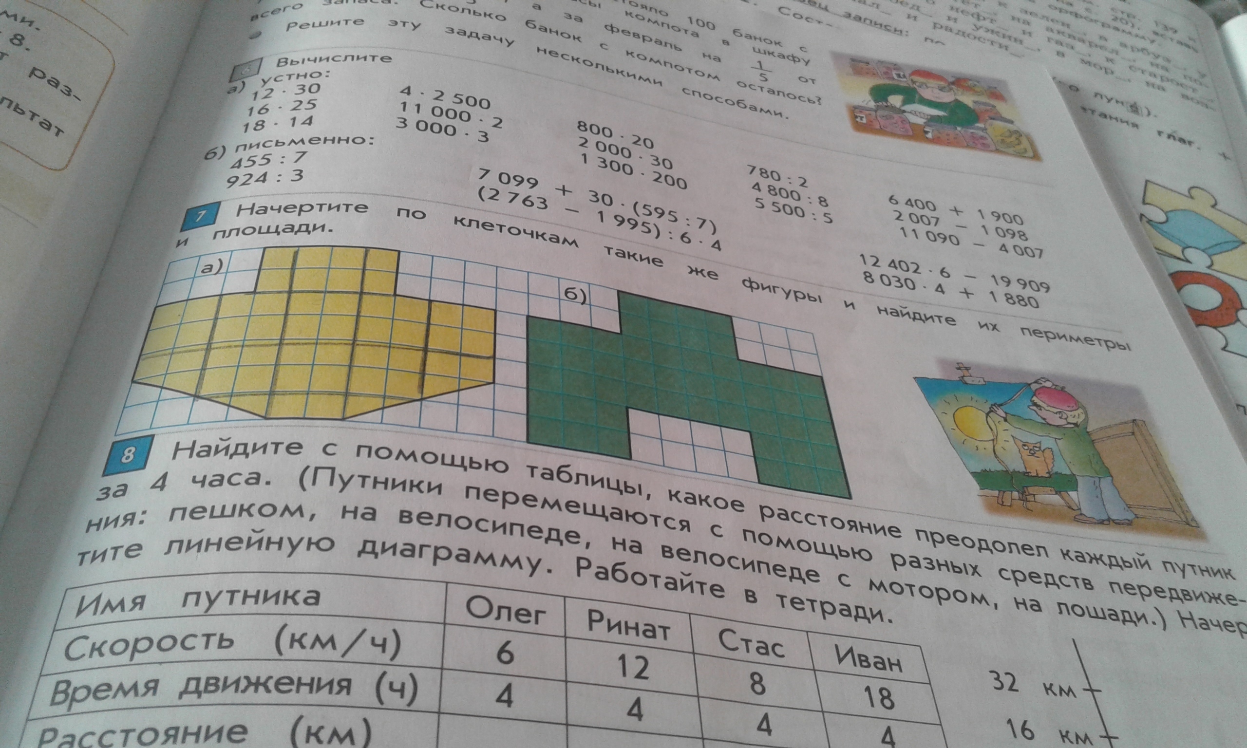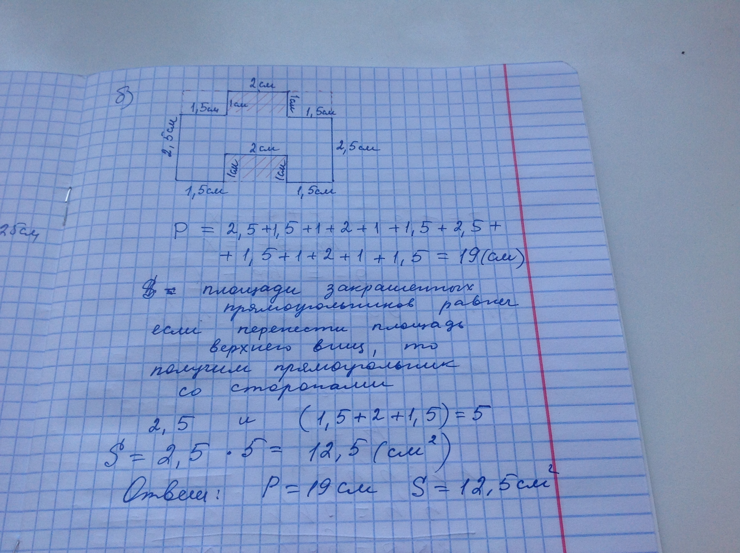 Начертите по клеточкам такие же фигуры и найдите их периметры и площади.