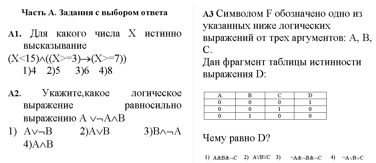 Вариант 1)A&B&¬C = 0*0*1 = 1 - ложь, ответ не подходит