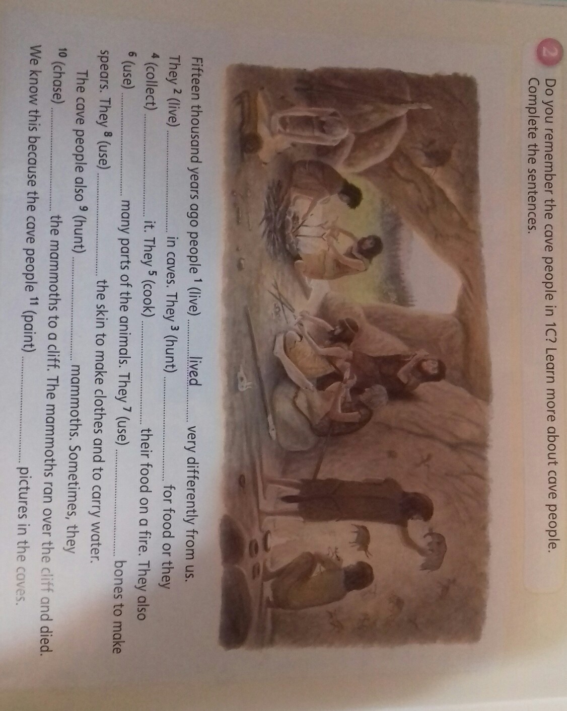 2)lived, 3)hunted, 4)collected, 5)cooked, 6) used, 7)used, 8) used, 9)hunted, 10)chased, 11)painted