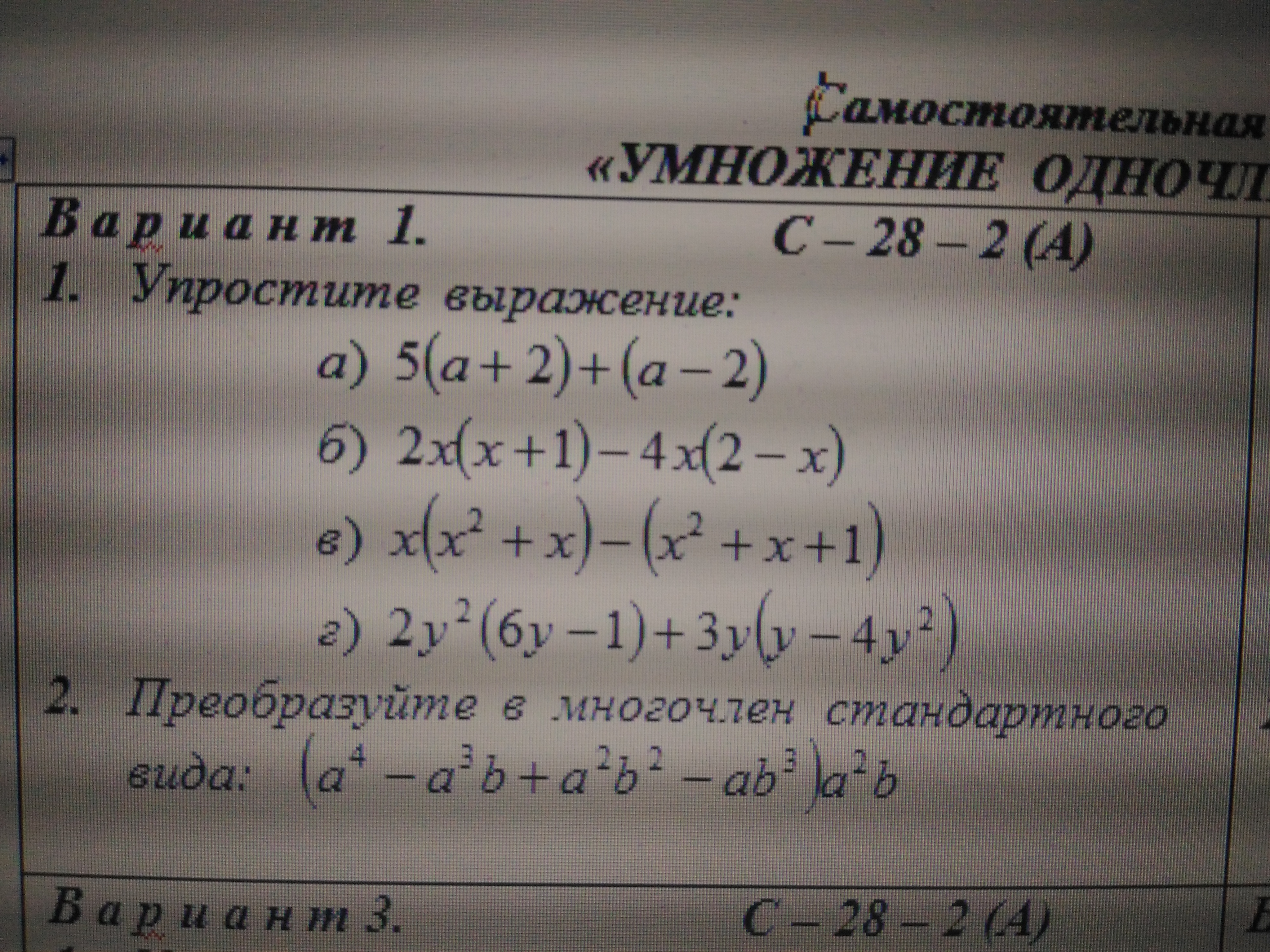 г) 2y²(6y-1)+3y(y-4y²)=12y³-2y²+3y²-12y³=y²
