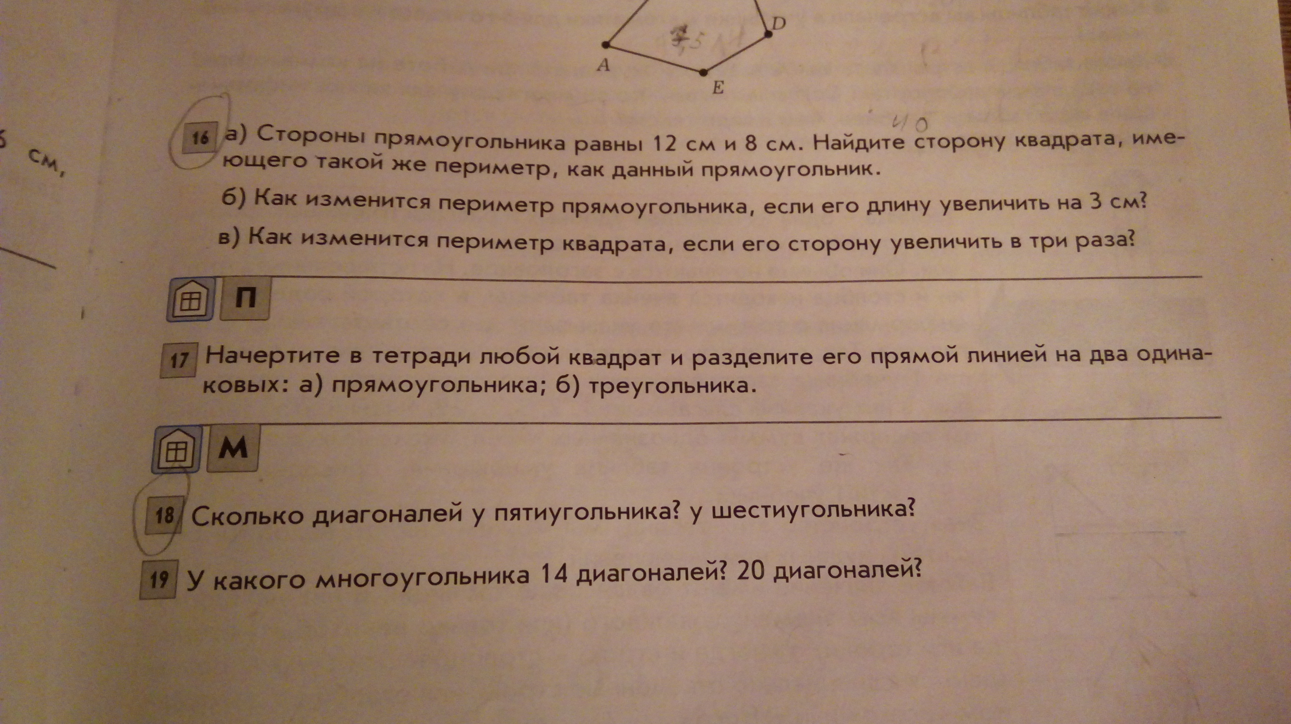 18.у пятиугольника 5 диагоналей