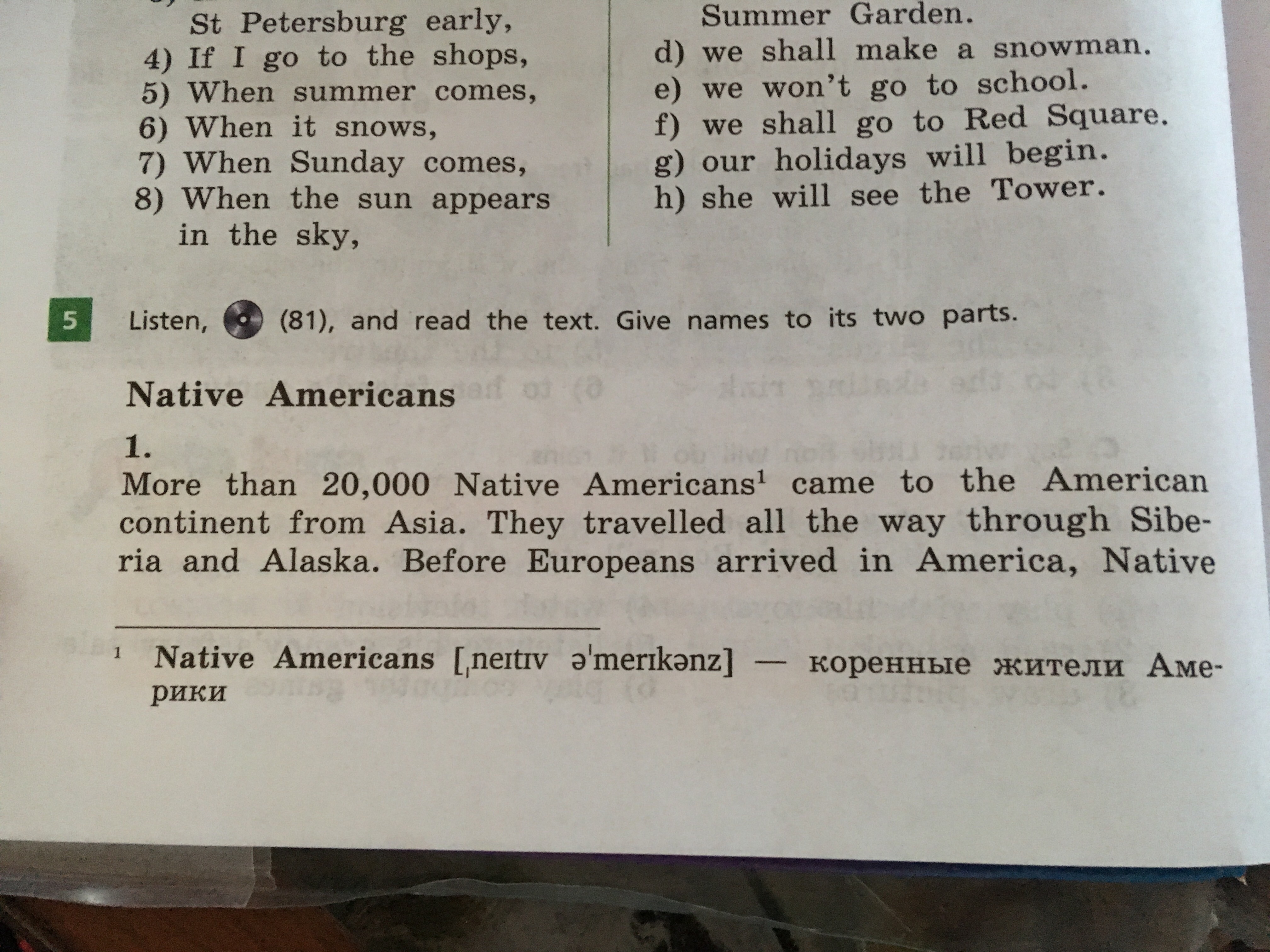 Более 20 000 коренных американцев пришли на американский континент из Азии. Они путешествовали по всей Сибири и Аляске. До того, как европейцы прибыли в Америку, коренные американцы, или индейцы жили в племенах. Племена были совсем другие: некоторые выращивали еду, некоторые ели пищу, которую они могли найти. Были также племена рыбаков и охотников. Они жили в деревянных домах или вигвамах, и сквозь них вокруг были духи - на деревьях, в горах, в огне или в воде. Духи могут принести им успех. Чтобы заставить своих духов обладать, индейцы имели обряды с танцами и музыкой. Индийские песни и стихи помогли им вспомнить свои традиции и историю. Большинство коренных американцев в те дни не могли писать. Индейцы были довольно мирными и надеялись жить счастливо на своей земле, где они могли охотиться и ловить рыбу.
