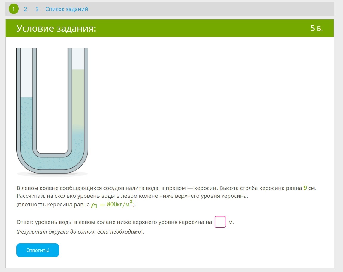 h1=po2*h2/po1=800*9/1000=7.2 см