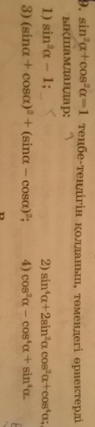 Используя уравнение sin2 алфа +cos2 алфа = 1 уменьшите следующие выражения: