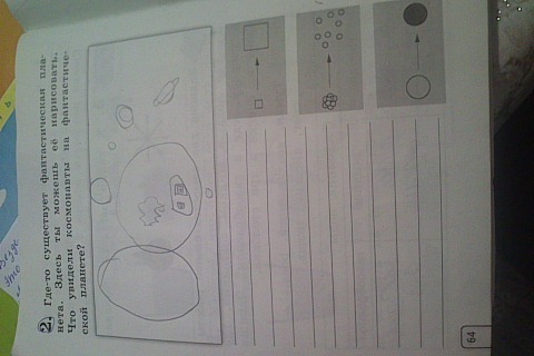 Где-то существует фантастическая планета. Здесь ты можешь её нарисовать. Что увидели космонавты на фантастической планет.Помогите с заданием для брата 1 класс и ещё что-то внизу
