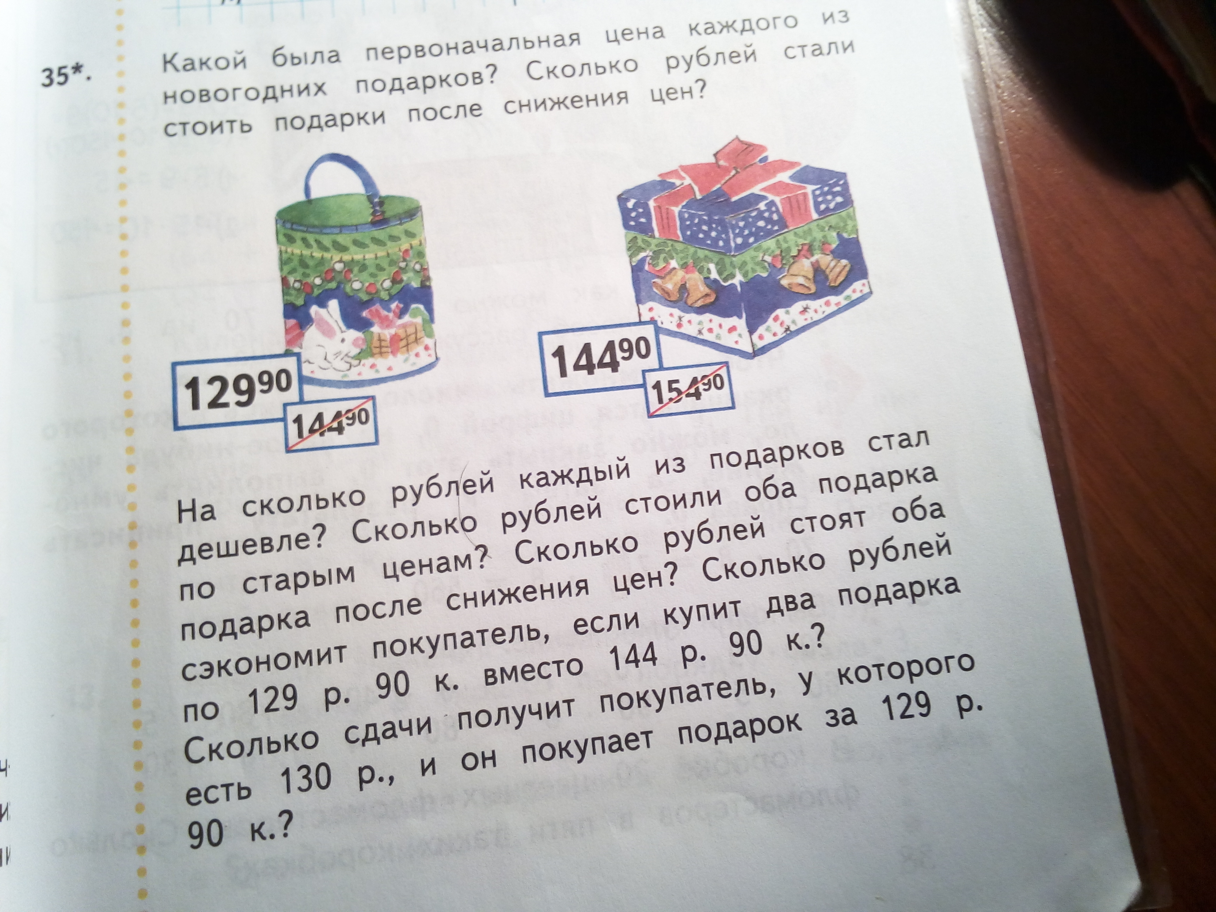 4) Ответ: По старой цене второй подарок стоил 154р. 90к.