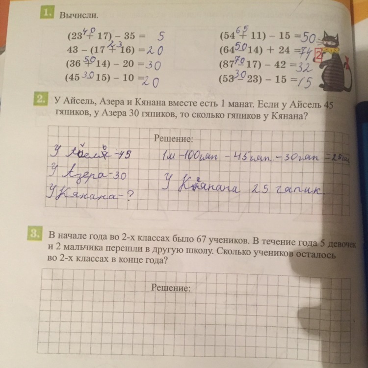 2) 67-7=60(уч.)-осталось во 2-х классах