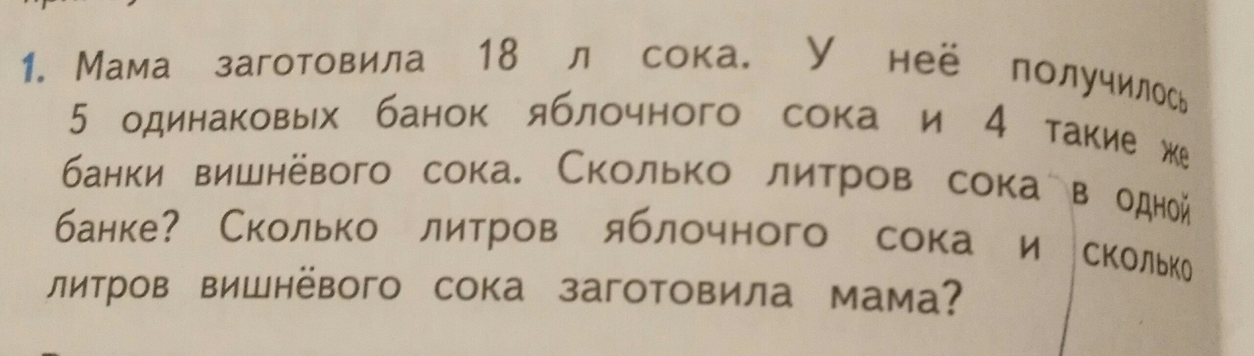 Ответ :Яблочного 10 литров, а вишневого -8 литров