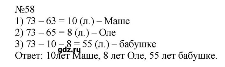 бабушке вместе с внучкой Олей 63 года вместе с внучкой Машей 65 лет Всем им вместе 73 года Сколько лет каждой из них