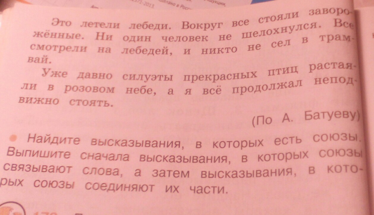 Уже давно силуэты прекрасных птиц растаяли в розовом небе, а я все продолжал неподвижно стоять. (союз а связывает части предложения)