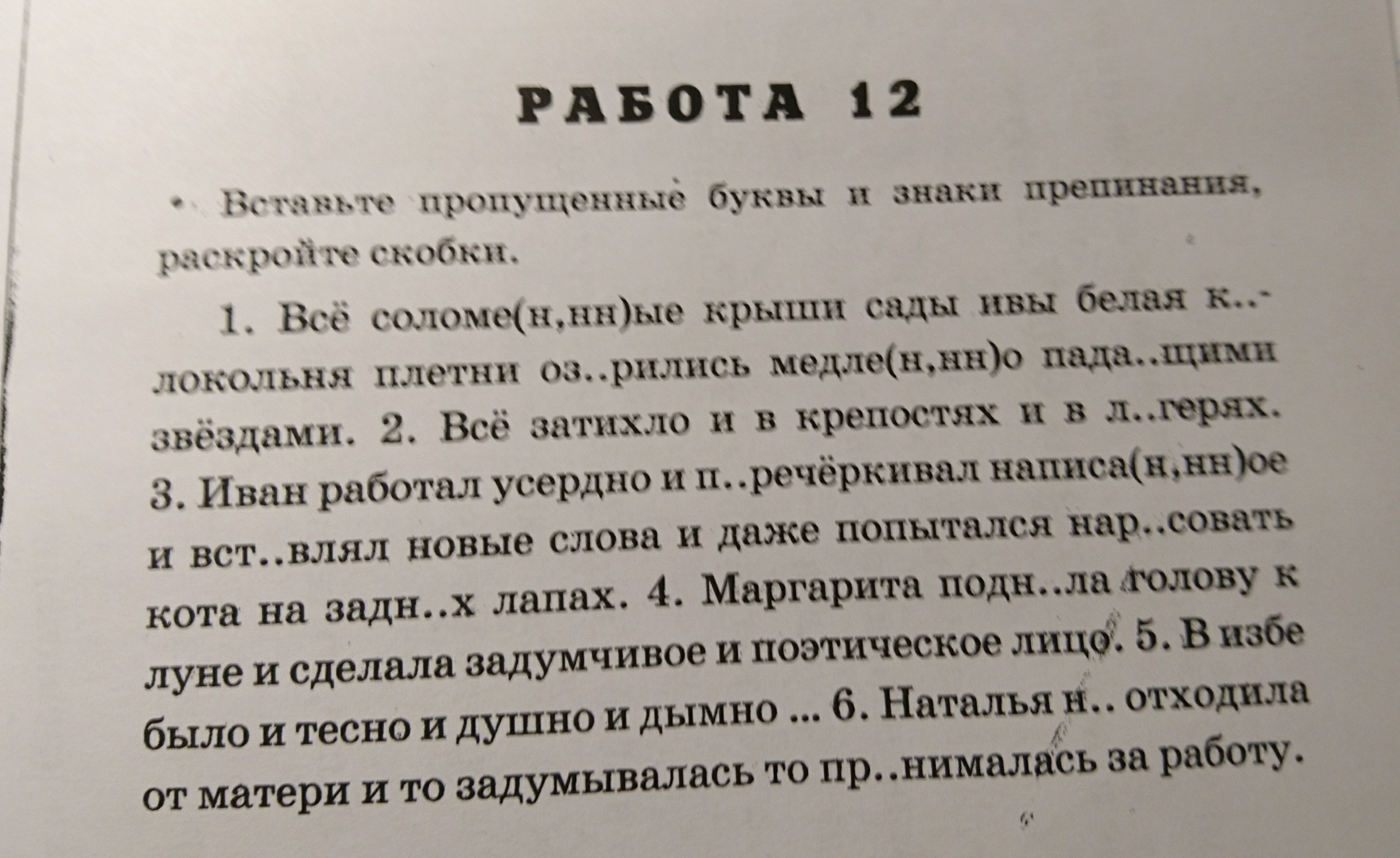 Всё: сломленные ( причастие, суффикс "ЕНН" ) крыши, сады, ивы, белая колокольня ( кОлокол ), плетни озарились ( корень "зар" ) медленно ( в наречии пишется столько же "Н" сколько и в полном прилагательном ) падающими звёздами. Всё затихло и в крепостях, и в лагерях. Иван работал усердно и перечёркивал ( приставка "ПЕРЕ" ) написанное ( причастие, суффикс "ЕНН" ) ,и вставлял ( встАвить )новые слова, и даже попытался нарисовать ( рИсунок ) кота на задних лапах. Маргарита подняла ( поднЯть ) голову к луне и сделала задумчивое и поэтическое лицо. В избе было и тесно, и душно, и дымно...Наталья не отходила ( НЕ с глаголами пишется раздельно ) от матери и то задумывалась, то принималась ( приставка ПРИ, значение присоединение ) за работу.