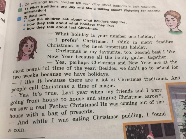 - Я люблю это, потому что существуют очень много Рождественских традиций. И люди называют Рождество - временем волшебства. Да, это правда. Прошлым годом, когда мои друзья и я шли из дома в дом и пели Рождественские песенки, мы увидели настоящего Рождественского Отца (это типо Дед Мороз)! Он выходил из дома с сумкой подарков.