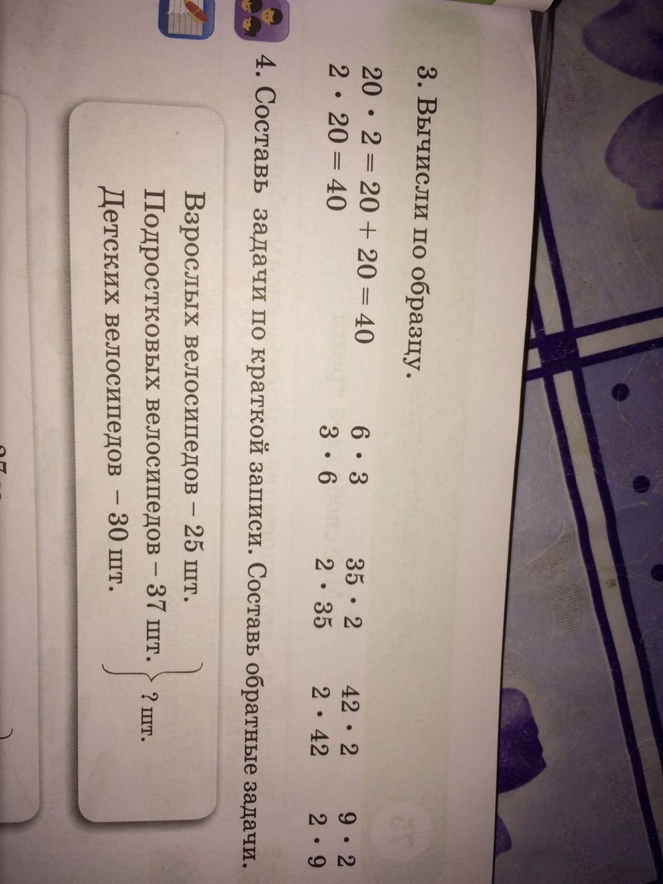 1. 6×3= 12 2. 3×6= 12 3. 35×2= 70 4. 2×35= 70 5. 42×2= 84 6. 2×42= 84 7. 9×2= 18 8. 2×9= 18