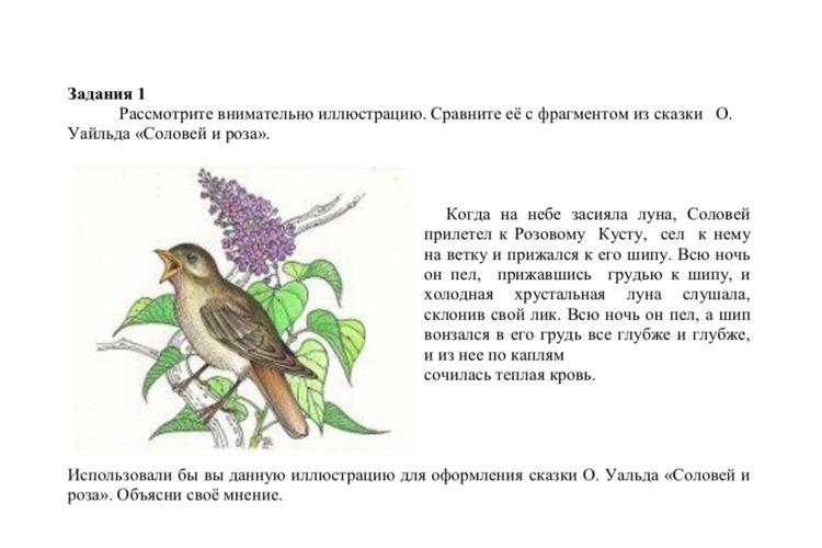 Нет, так как на иллюстрации не роза, а сирень. Нет шипа, вонзающегося в грудь птицы...Фон совсем не ночной