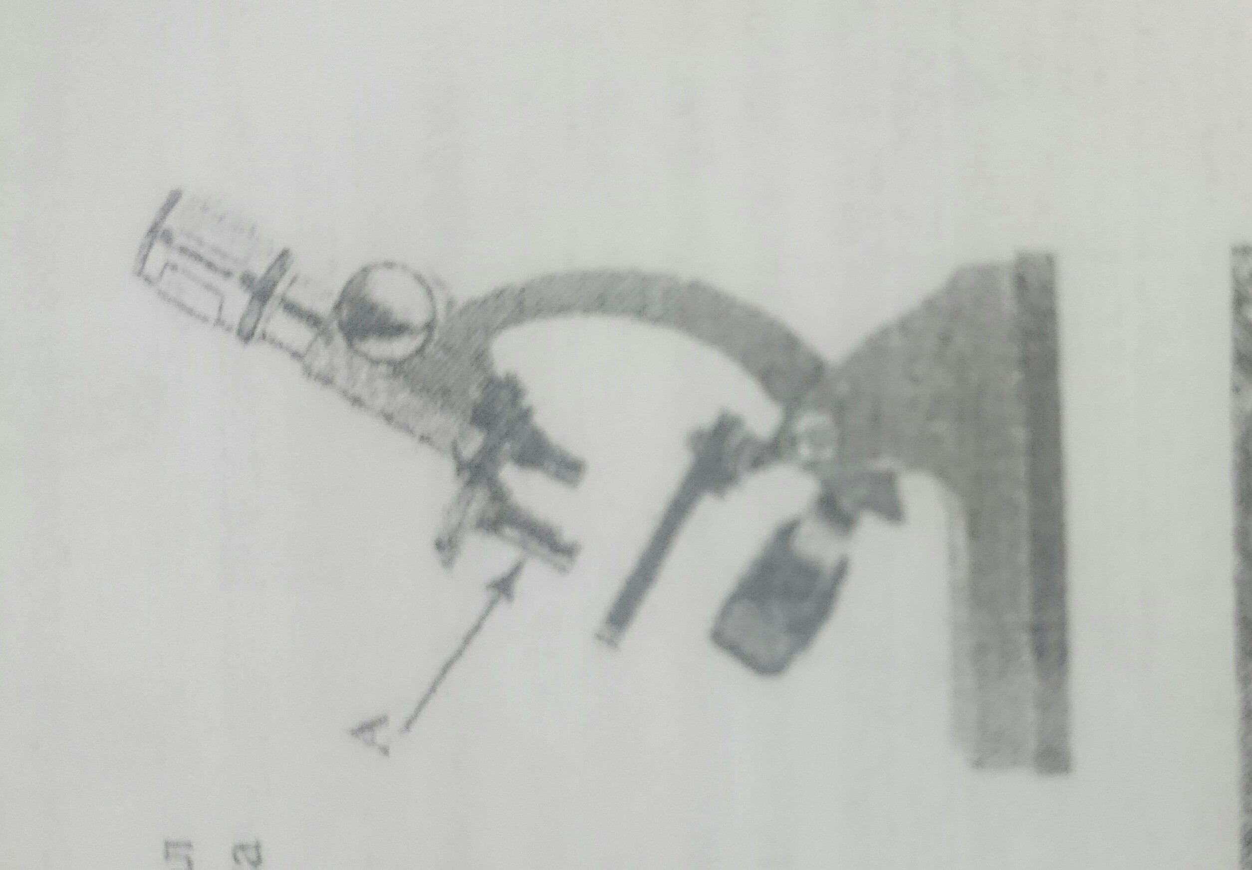Ученик на уроке изучал устройство микроскопа и делал соответствующие подписи к рисунку. Какую деталь микроскопа он обозначил буквой А?