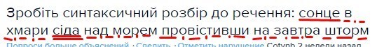 Зробіть синтаксичний розбір до речення: сонце в хмари сіда над морем провістивши на завтра шторм