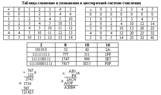 Составить таблицу сложения и умножения для 6-ричной системы счисления.