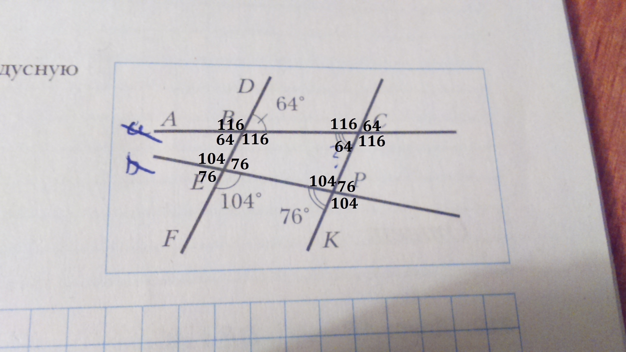 исходим из того что противоположные углы равны, прямая имеет 180 градусов а сумма углов четырёхугольника 360 градусов
