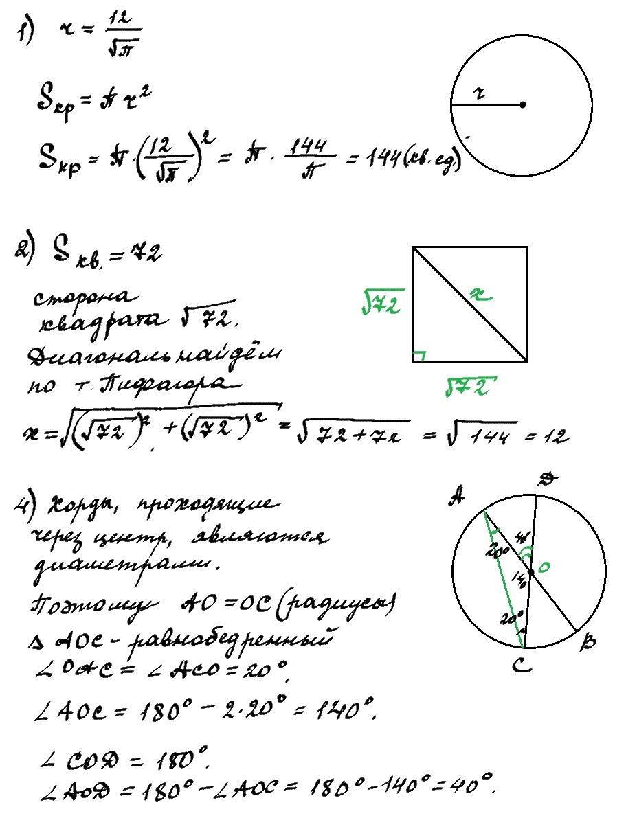 1) радиус окружности равен 12/√pi. найти площадь круга этого радиуса.