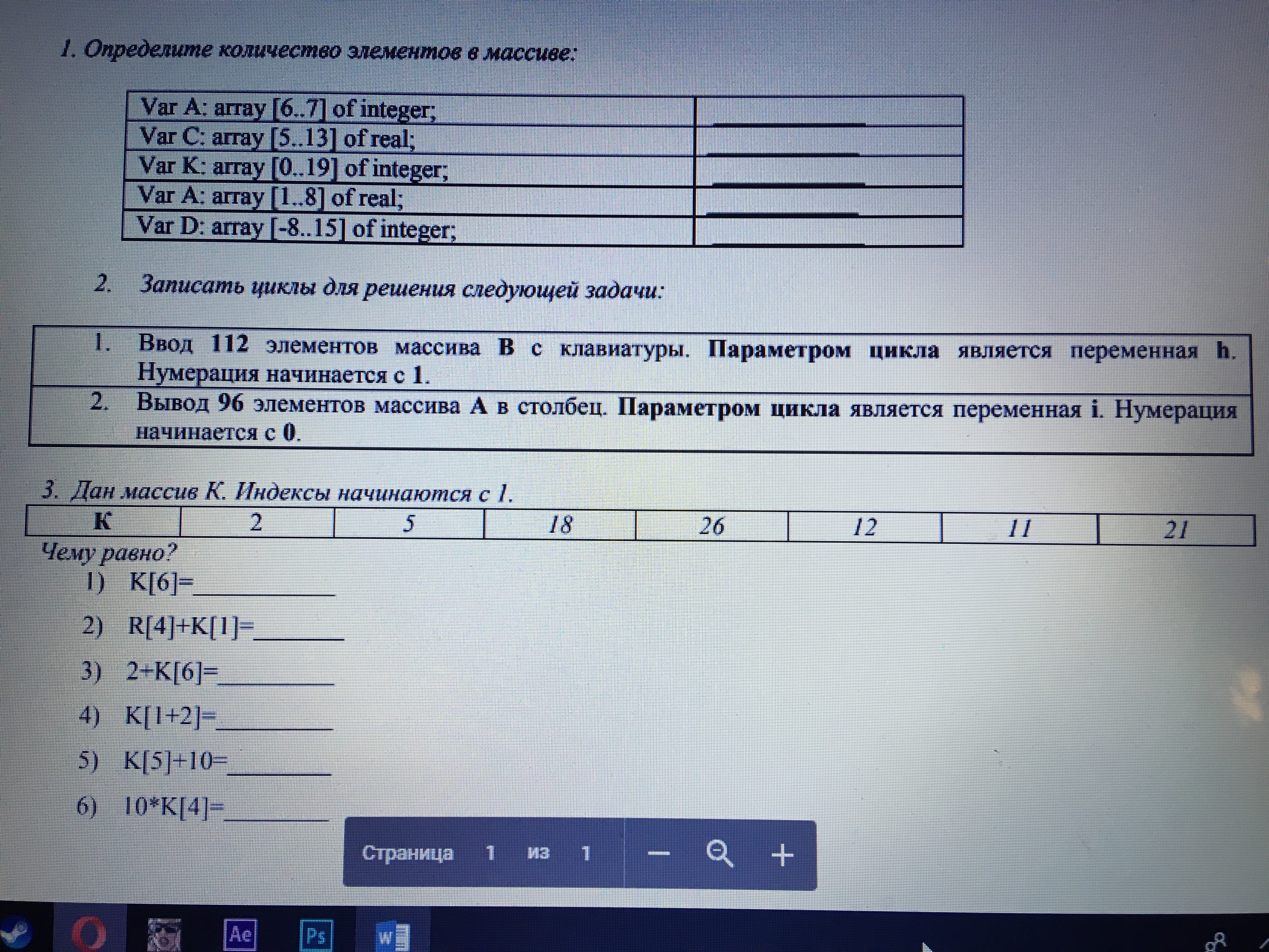 Var K [0..19] = 20 элементов.