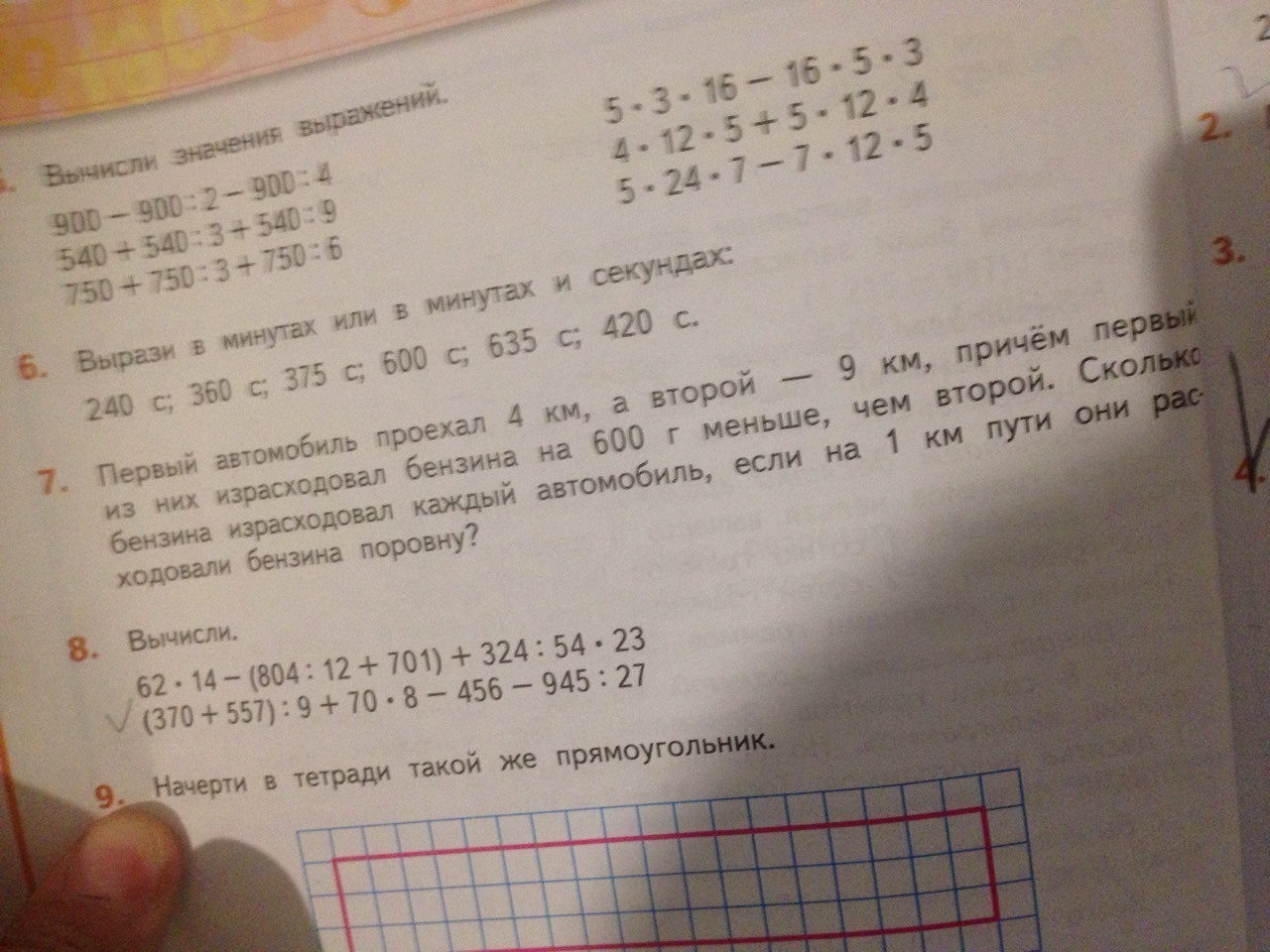 9-4=5(км) - за 5 км расходуется 600г бензина