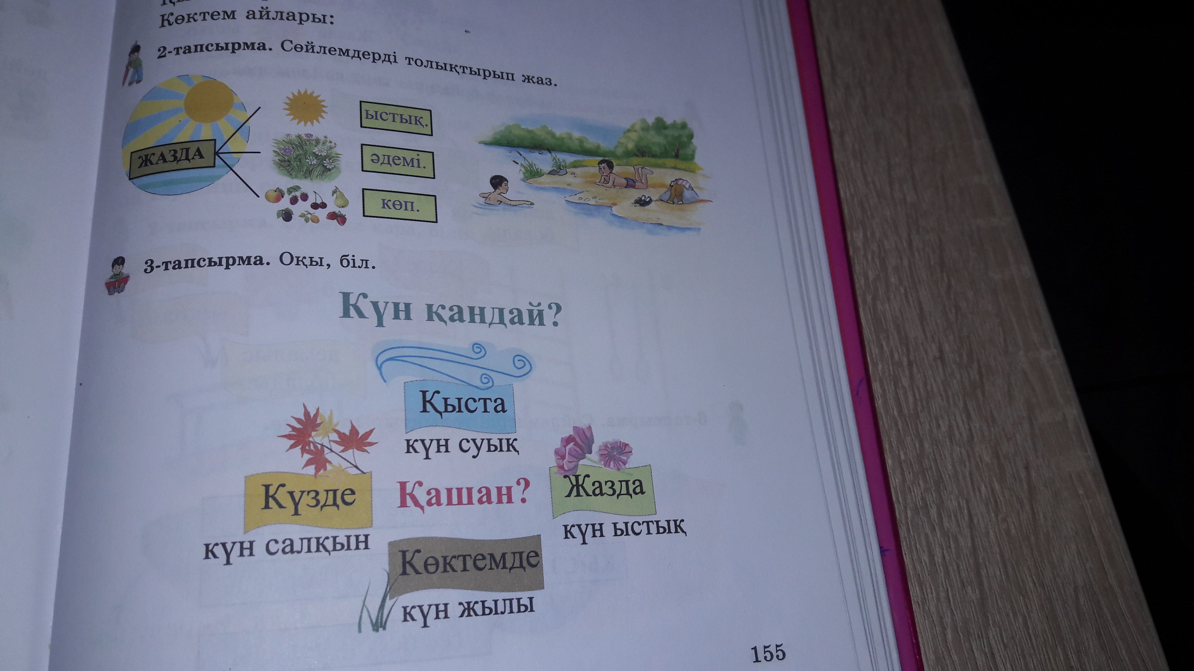 Жазда кун ыстык. Жазда шоптер мен гулдер адеми. Жазда жемистер коп. 3 тапсырма. Казан кун суык ? Кыста. Кашан кун ыстык? Жазда. Кашан кун жылы? Коктемде. Кашан кун салкын .? Кузде.