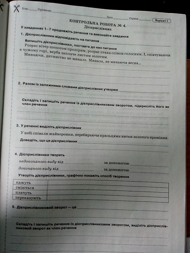 4 - недоконаного виду від питання що роблячи ,що робивши,за допомогою суфікса учи,ючи,ячи,ачи та ши.